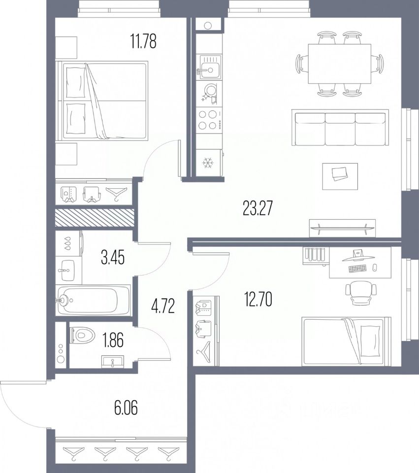 Просторная двухкомнатная квартира с предчистовой отделкой в ЖК "LEGENDA Васильевского" на 10 этаже. Общая площадь: 63.84 кв.м., жилая: 24.48 кв.м., площадь просторной кухни-столовой: 23.27 кв.м. Угловая квартира, идеально подойдет любителям тишины и панорамных видов. В квартире один раздельный санузел. Высота потолков 2.7 м.
