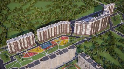 Обустроенная придомовая территория, детский городок с безопасным покрытием, спортивные площадки с тренажерами для взрослых, устройство дорожек, прогулочных зон, озеленение площадью 14 000 кв.м.