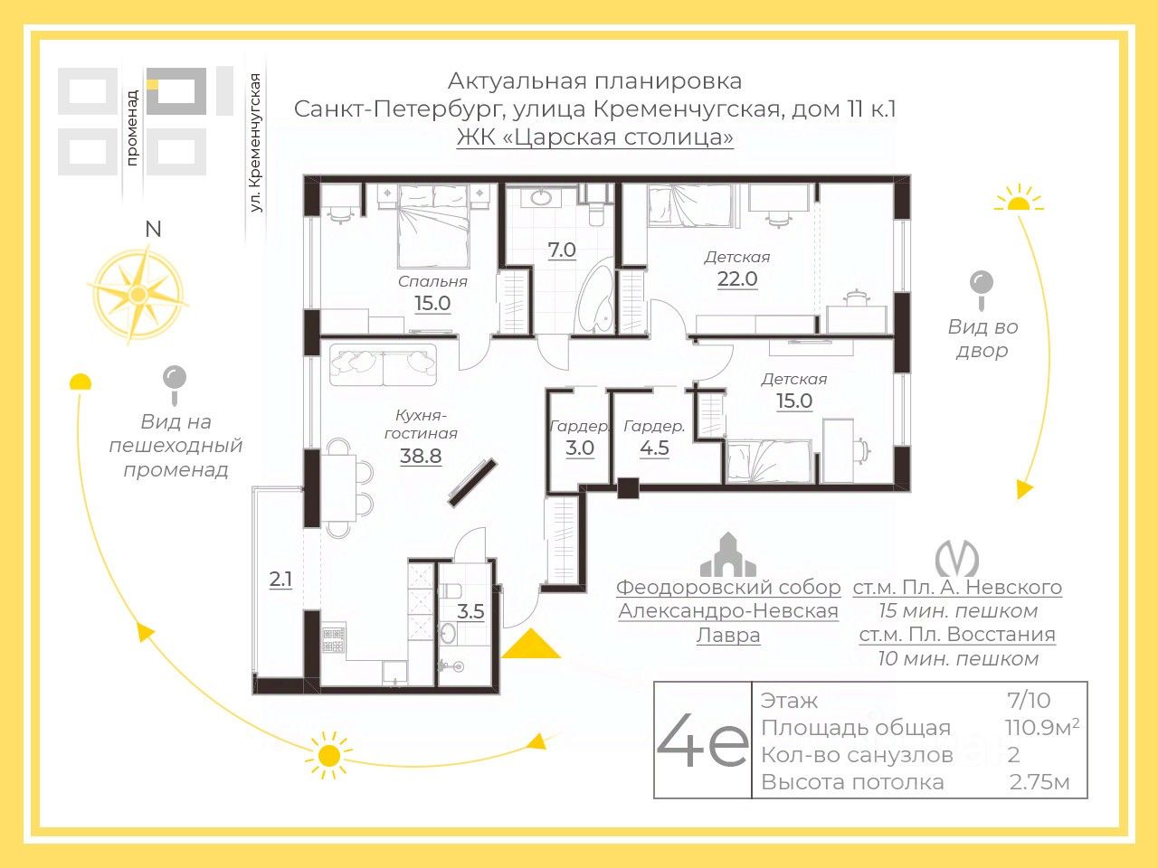 Арт. 129298404 Вашему вниманию предлагается просторная функциональная 3х комнатная квартира в ЖК "Царская столица"