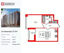 Продается уютная 1-комнатная квартира в жилом комплексе "Титул в Московском" в престижном Московском районе. До метро можно добраться пешком всего за 25 минут. Удобная, классическая, функциональная европланировка, большая кухня-гостиная 15.15 м², просторная прихожая 4.21 м². Общая площадь квартиры - 33.7 м², жилая 10.61 м², высота потолка 2.77 м. Квартира продается с отделкой "NORD LINE WHITE ВК NEW". Что особенного в ЖК "Титул в Московском"? • Престижный Московский район • Авторская архитектурная концепция • 2 центральные входные группы с ресепшн и лаундж-зонами • Кленовая аллея с арт-стеллой, цветочная аллея и сад трав • Уютные дворы-патио, площадки SetlKids и SetlSport • Инновационный Лицей Setl с оригинальной архитектурной концепцией и уникальной образовательной средой
