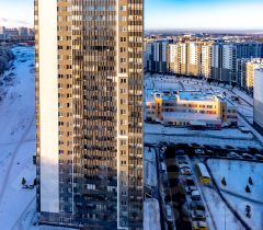Корпус находится ближе всего Новоорловскому заказнику. Территория ЖК очень хорошо благоустроена: пешеходные аллеи с декоративными кустарниками, детскими площадками и зонами отдыха. Входные парадные расположены на уровне земли, без ступеней и пандусов и двумя входами: со двора и улицы.