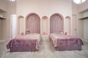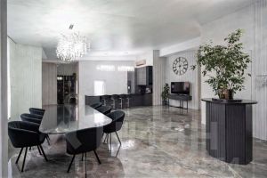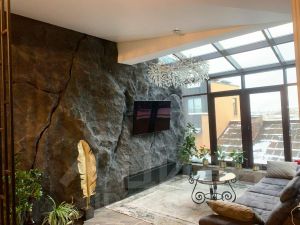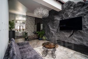 • Гостевая зона: просторная гостиная-столовая с имитацией скального рельефа и зоной отдыха.