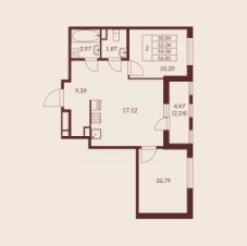Общая площадь54,58 м²