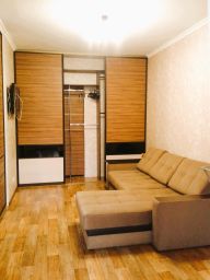 раскладной диван), комната: 15,2кв.м. (установлен на всю длину стены встроенный шкаф-купе. Из комнаты имеется выход на просторный балкон). Высота потолка 2,7м. с Балкон с панорамным остеклением может служить и кабинетом в летнее время. Санузел 4,1кв.м. совмещенный, просторный, с установленными большой ванной, умывальником, унитазом и стиральной машиной. Прихожая-7,5кв.м.- просторная входная зона, где установлен большой, вместительный шкаф-купе. Во всех комнатах и помещениях установлены радиаторы с терморегуляторами, что позволяет регулировать расход отопления. Чистая парадная. Пассажирский и грузовой современные лифты. Квартира идеальна для проживания или сдачи в аренду.
