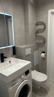 Светлая студия со звукоизоляцией, свежим ремонтом и новой мебелью! Очень люблю эту студию, поэтому продам только человеку с добрым сердцем. Местоположение: - 12 минут ходьбы (или 1 автобусная остановка) от метро Девяткино - 5 минут на авто от КАДа. Дом и инфраструктура: - ЖК Краски лета - Дом 2017 года постройки - 17 этаж из 20, вид на крыши соседних домов и голубое небо, а не на окна соседнего дома. - в доме напротив расположен детский садик, в пяти минутах от дома школа Площадь студии: 30 кв.м. = 24,4 кв.м. + 5.6 кв.м. (балкон) Делал ремонт мой папа (профессионал своего дела), поэтому ремонт очень добротный и продумана в нём каждая мелочь. Теперь в моей жизни новые изменения: меня пригласил к себе жить мой жених, поэтому после ремонта никто в студии не проживал ни одного дня. Всё, что вы видите на фото, остаётся вам после продажи. Начну с того, что студия очень тёплая. Витражи от застройщика были поменяны на стеклопакет. Балкон обшит теплоизоляцией со всех сторон. На нём же сделана вытяжка свежего воздуха с улицы, её можно включать и выключать. Радиатор от застройщика заменён на новенький. Пол покрыт ламинатом Тизон 33 класса с фаской, толщина 12 мм. Кухня Vivat коллекции фьюжн, в изысканном цвете Cream silk (кашемир). Матовые фасады из МДФ с отделкой ПЭТ с гладкой и приятной на ощупь поверхностью, которая устойчива к влаге и не выцветает со временем. А главное — на ней не остаются отпечатки пальцев. Фартук сделан из фактурной глазурованной плитки. Кухня оснащена: холодильником, варочной поверхностью на 4 конфорки, электрической духовкой и посудомойкой. Кухня сделана во всю стену, верхние шкафчики достигают потолка, мест хранения предостаточно. Стены покрыты белой интерьерной моющейся краской. Помимо этого, в студии сделана звукоизоляция SoundGuard и на входе две двери, что также обеспечивают хорошую шумоизоляцию. Раскладной диван отделяет зоны отдыха от зоны готовки. Как правило, в студиях диваны с видом на кухню, я очень хотела этого избежать. В комнате есть большой шкаф, и тв-тумба под телевизором LG. В ванной комнате сделана скрытая инсталляция для подвесного унитаза. Унитаз выбран безободковый, именно такие унитазы рекомендуют консультанты в них нет места для разведения бактерий. Система смыва унитаза торнадо, на сегодняшний день это самый мощный и тихий тип смывания. Ещё один плюс - в ней есть ванна! Не душ, а ванна! Продуманы ещё системы хранения: экран для ванны, под которой также можно что-то хранить, и шкафчик с подсветкой над стиральной машиной Samsung. Большая лоджия, ощущается как отдельная комната (5,6 м.кв), в которой при желании можно организовать рабочее место, оснащена большим креслом белорусской марки Пинскрдрев. Документы на технику, мебель, новые счётчики хранятся в одном из ящиков кухни. 1 собственник. В квартире никто не прописан, без обременений, выход на быструю сделку. Приходите на просмотр, вы не останетесь равнодушны от этой светлой студии. Прошу агентов не беспокоить.