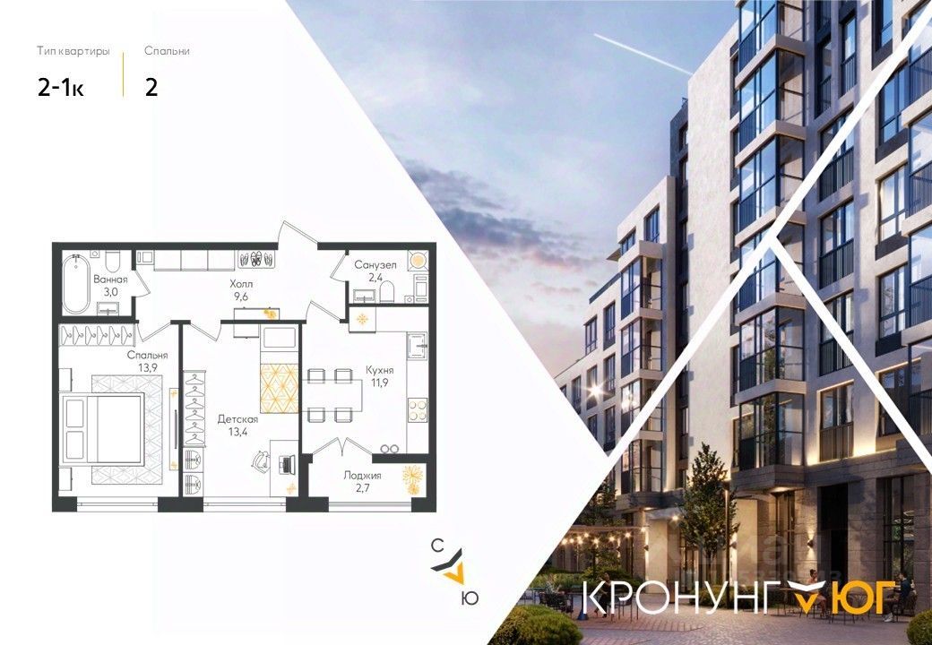 Кронунг ЮГ- современный жилой комплекс комфорт-класса на берегу реки Дудергофки. Невысокая этажность, современная архитектура. Благоустроенный внутренний двор будет включать в себя спортивные площадки, в том числе памп-трек, места для отдыха, прогулочную набережную, детские игровые площадки, места для выгула собак, шезлонги вдоль берега реки Дудергофки. Для автомобилей предусмотрен трехэтажный отдельно стоящий паркинг и парковочные места с зарядными станциями для электромобилей на территории ЖК.