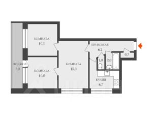 Гостиная: 15.3 кв.м (может служить и третьей жилой комнатой)
