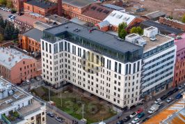 - На территории комплекса спроектировано торгово-офисное пространство с зонами коворкинга и выходом на крышу, а также концептуальный ресторан на 1 этаже.