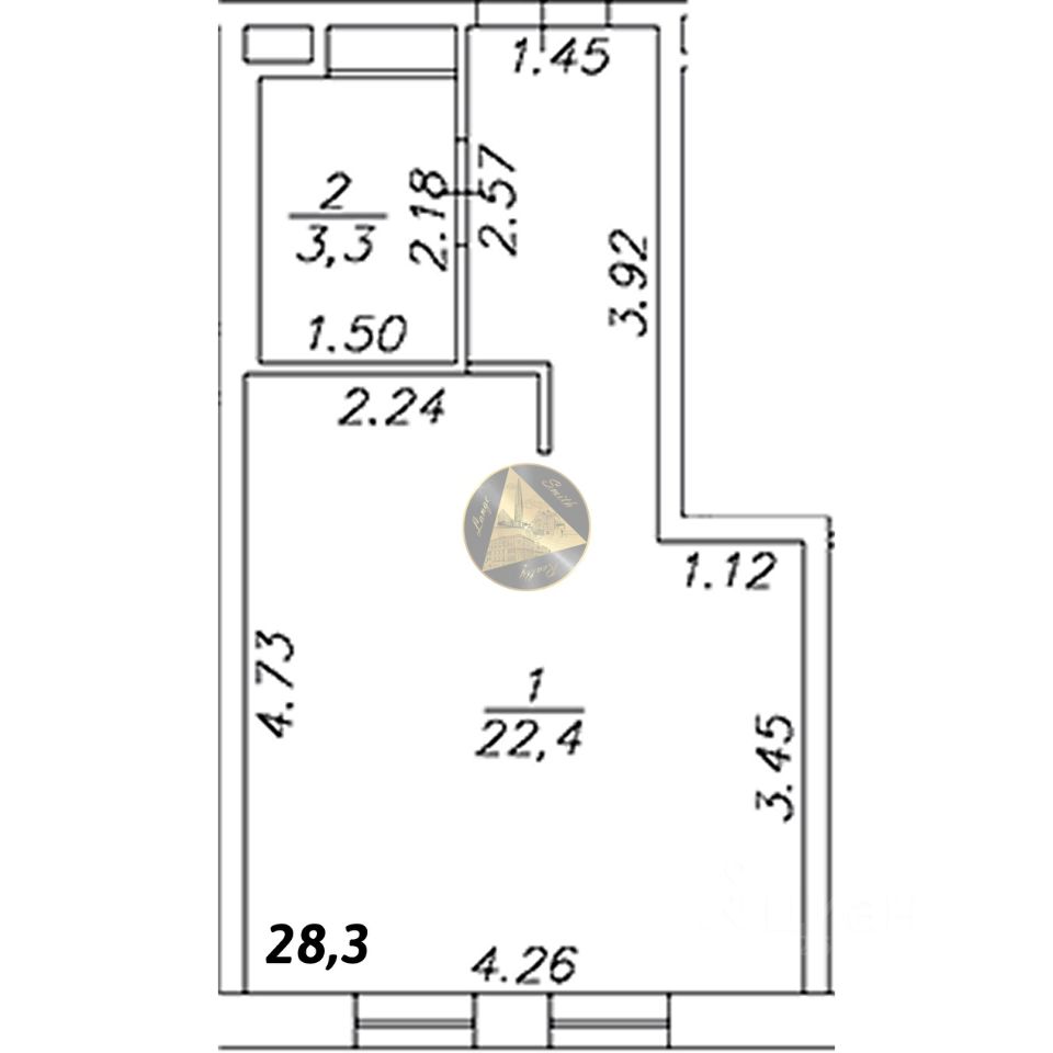 - Общая площадь квартиры 28.3 м2