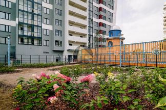 - На стилобате расположен благоустроенный двор с разновозрастными детскими и спортивными площадками.