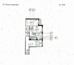 Комната 17,3, комната 13,6 кухня 7,7 , коридор 9,1, встроенный шкаф 09, встроенный шкаф 0,6, Плита газовая. Высота потолков — 2,5 метра, окна выходят во двор. Есть балкон.