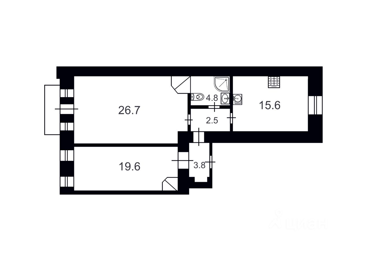 15,6 м²