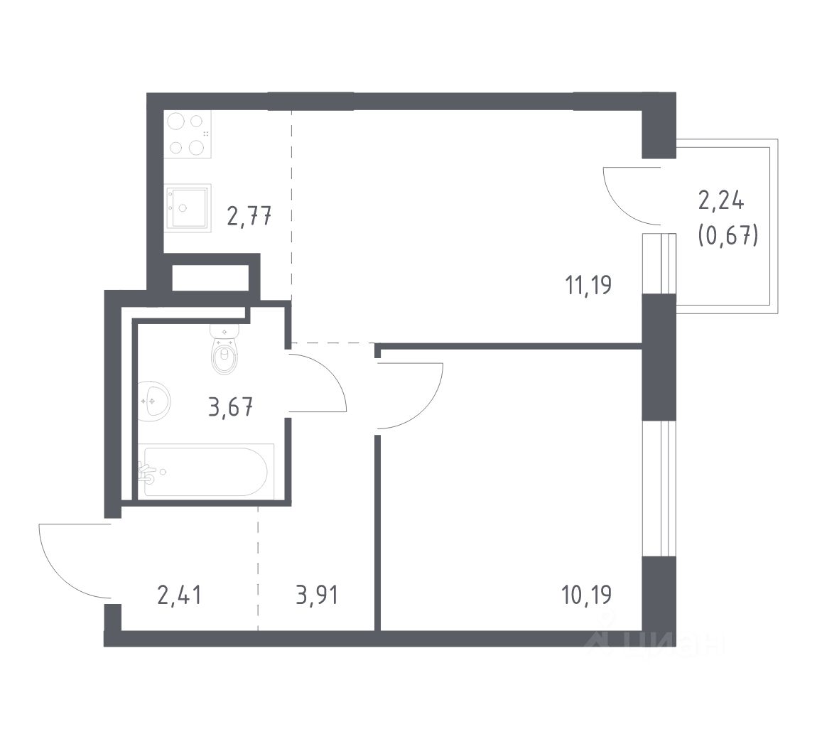 Общая площадь34,81 м²