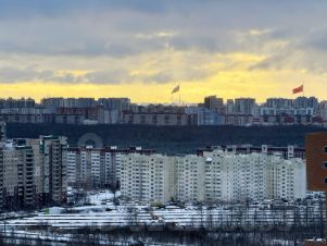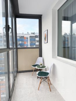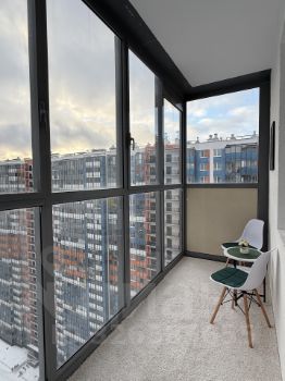 У квартиры увеличенный балкон - 5,7м с большими панорамными окнами в пол и прямым видом на город (вдалеке даже виден купол и колоннада Исаакиевского собора), также видно 2 флага в парке 300-летия Петербурга. Ночью город очень красиво подсвечен, что создаёт потрясающую атмосферу.