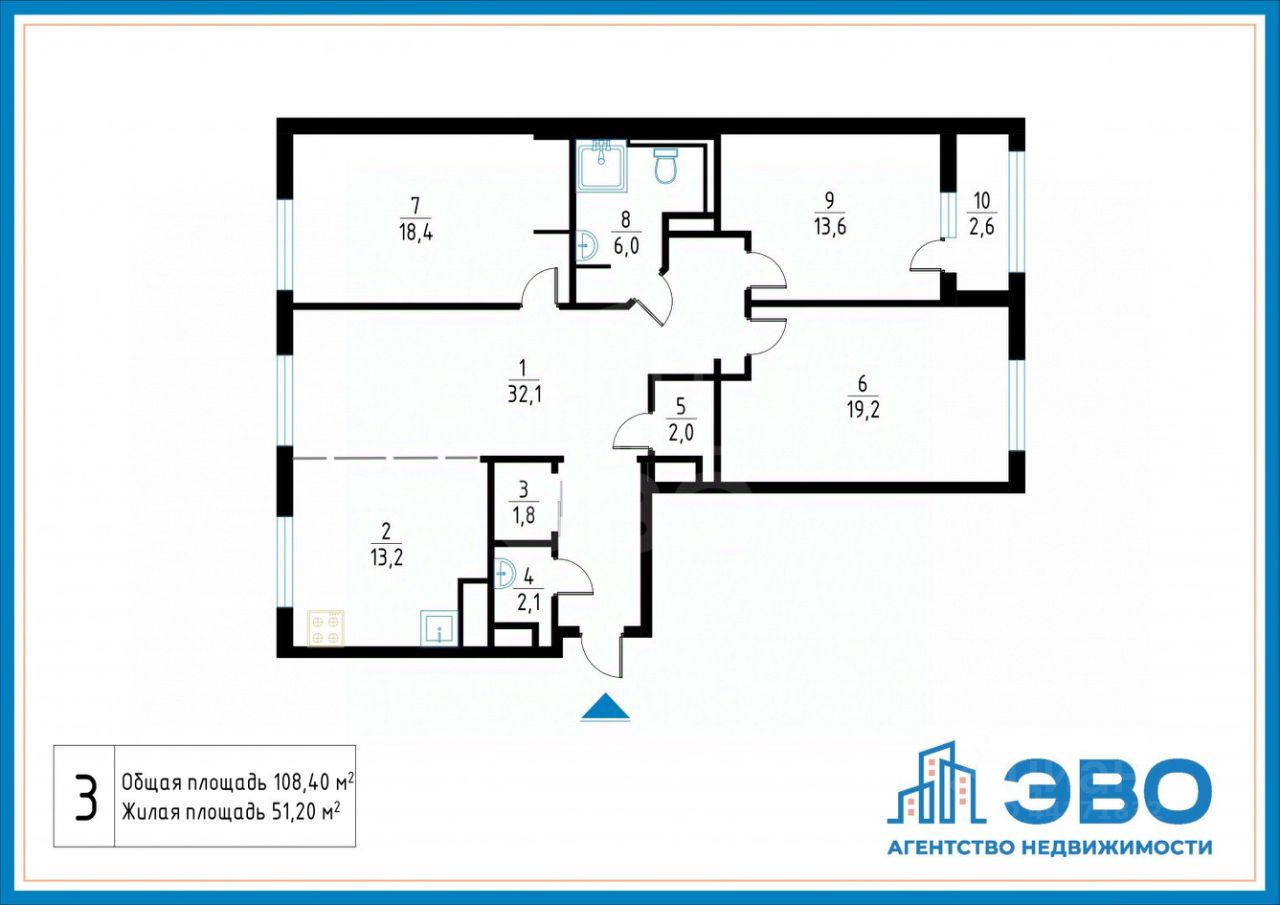 продуманная планировка с большой гостинной и тремя изолированными спальнями