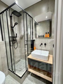 В санузле изготовлен душевой поддон с использованием щелевого трапа! Смонтировано стеклянное душевое ограждение. Установлен теплый пол.