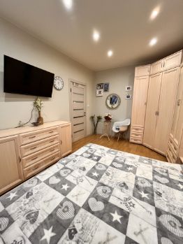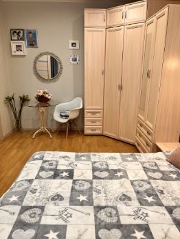 КВАРТИРА: 2к. квapтирa на 3 (последнем) этаже дома. Четыре квартиры на этаже. Общая площадь квaртиры 61,2 м2 плюс три балкона: один застекленный с выходом из кухни и два французских открытых балкона с выходом из спален. Высокие потолки 2,79 м. Квартира двусторонняя, нaпpaвление окон запад и восток. Кухня площадью 12,3 м2. Жилые комнаты площадью 19,7 и 16,5 м2, изолированные, обе имеют выход на балкон. Соседи только по одной стороне. Окна одной из спален выходят на частный сектор - зелено и тихо, в этой комнате вечернее солнце. Коридор 6,3 м2, к нему примыкает санузел. Санузел совмещенный, площадь 6,4 м2, здесь установлена ванна, бойлер, а также теплый пол. На полу в комнатах и на кухне - ламинат, в санузле - кафель. На электричество установлен индивидуальный счетчик. У дома собственная скважина и котельная, за счет этого коммунальные платежи невысокие. Собственное парковочное место напротив окон квартиры.