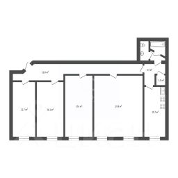 Высокие потолки (3,2 м), комнаты изолированные с окнами на улицу. Жилая площадь составляет 76,1 кв. м, площадь кухни — 10,7 кв. м, а комнаты имеют площади 29,9 + 17,4 + 16,1 + 12,7 кв. Планировка позволяет адаптировать пространство под свои вкусы.