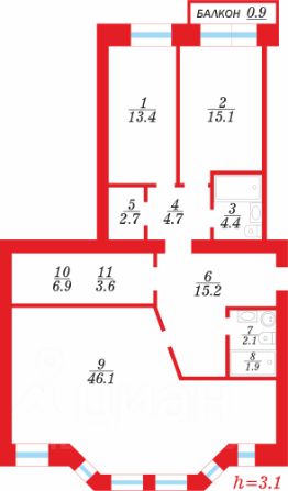 Все комнаты изолированы, что обеспечивает комфорт и приватность. Высокие потолки 3 метра добавляют ощущение простора и свежего воздуха. Из окон открывается вид на улицу и тихий двор.