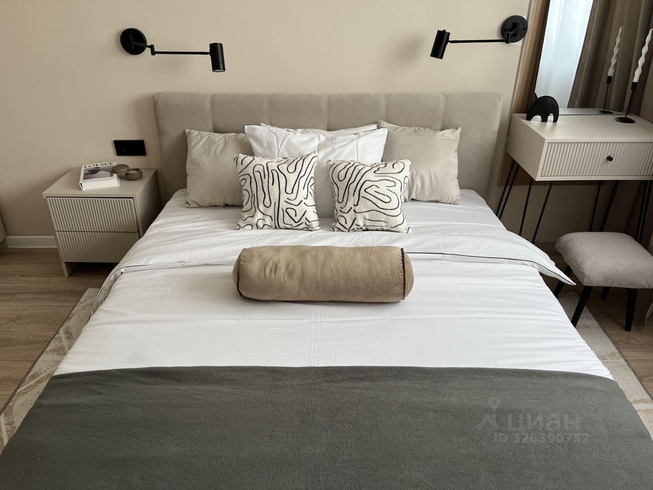Кухня площадью 6 м² оснащена необходимой техникой, включая холодильник и посудомоечную машину. В квартире предусмотрена гардеробная, а также шкафы для хранения вещей.