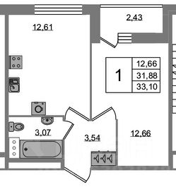 В квартире сделан качественный ремонт. Общая площадь квартиры 31,5 кв.м, кухня 12,6 кв.м., спальня 12,6 кв.м., с выходом на лоджию, просторная прихожая 3,5 кв. м. Окна квартиры выходят не во двор, а на противоположную сторону.