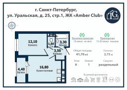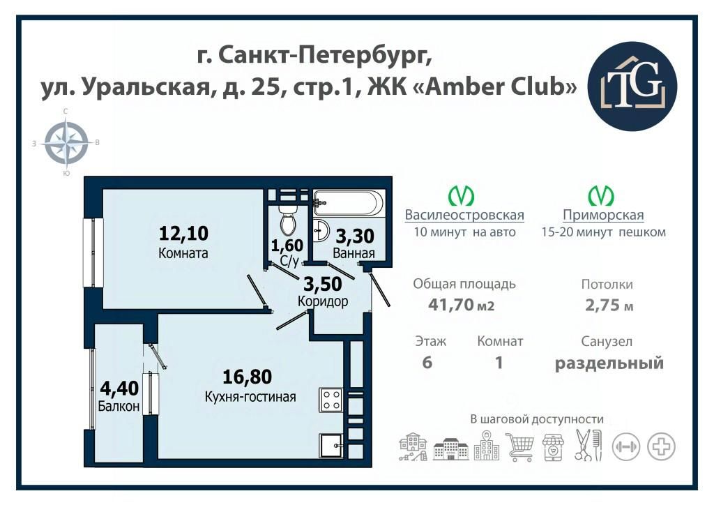 Станция метро "Приморская" находится в 15-20 минутах пешей доступности от Amber Club;