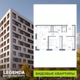 Двухкомнатная квартира с предчистовой отделкой в ЖК "LEGENDA Васильевского" на 2 этаже. Общая площадь: 54.14 кв.м., жилая: 20.93 кв.м., площадь просторной кухни-столовой: 18.08 кв.м. Угловая квартира, очень светлая, естественная вентиляция при открытии окон. В квартире один раздельный санузел. Высота потолков 2.72 м.