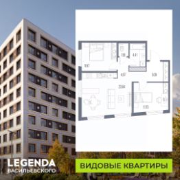 Просторная 2-комн. квартира с предчистовой отделкой в ЖК "LEGENDA Васильевского" на 10 этаже. Общая площадь: 63.33 кв.м., жилая: 23.37 кв.м., площадь просторной кухни-столовой: 23.94 кв.м. Квартира угловая, очень светлая, естественная вентиляция при открытии окон. В квартире один раздельный санузел. Высота потолков 2.7 м.