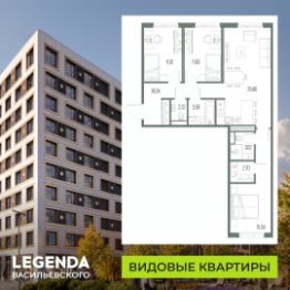 Трехкомнатная квартира от застройщика с предчистовой отделкой в ЖК "LEGENDA Васильевского" на 8 этаже. Общая площадь: 84.97 кв.м., жилая: 37.1 кв.м., площадь просторной кухни-столовой: 25.8 кв.м. Квартира - распашонка, без проходных комнат, окна выходят на paзные стороны дома. В квартире один совмещенный и один раздельный санузел. Высота потолков 2.7 м.