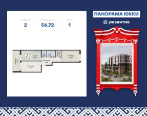 Продается 2-комнатная квартира площадью 56.72 кв.м в жилом доме "Панорама Юкки" в северной части Санкт-Петербурга с видами на северную природу, в 9 км от КАД.