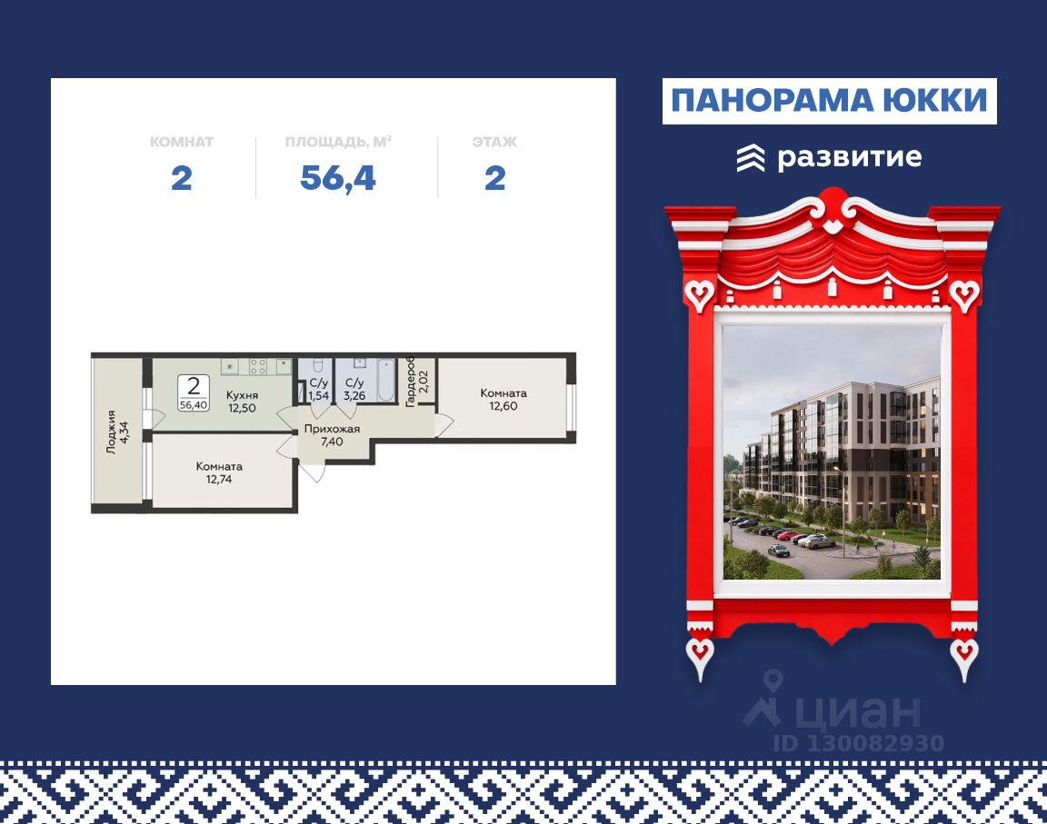Продается 2-комнатная квартира площадью 56.4 кв.м в жилом доме "Панорама Юкки" в северной части Санкт-Петербурга с видами на северную природу, в 9 км от КАД.