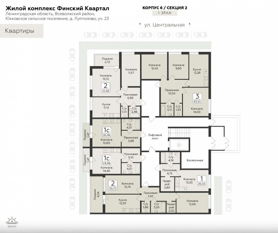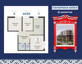 Продается 3-комнатная квартира площадью 63.92 кв.м в жилом доме "Панорама Юкки" в северной части Санкт-Петербурга с видами на северную природу, в 9 км от КАД.