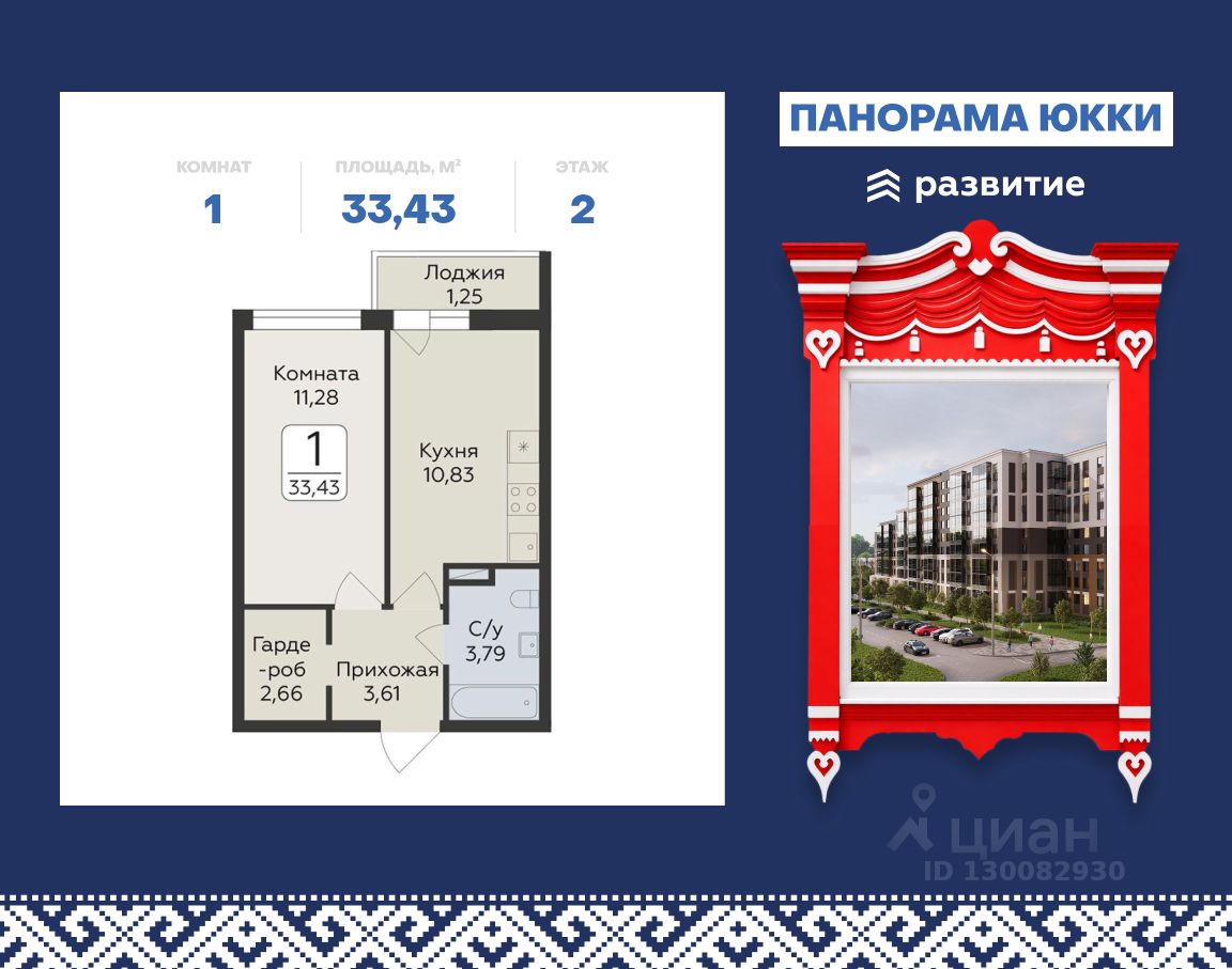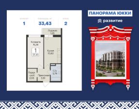 Продается 1-комнатная квартира площадью 33.43 кв.м в жилом доме "Панорама Юкки" в северной части Санкт-Петербурга с видами на северную природу, в 9 км от КАД.