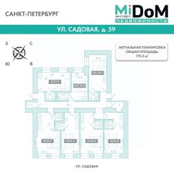 - Жилое помещение 170,5 м.кв. на 2-м этаже с отдельным кадастровым номером и двумя входами (оба с Садовой). Возможен дальнейший перевод в нежилое, на 1-м этаже под ним нежилое.