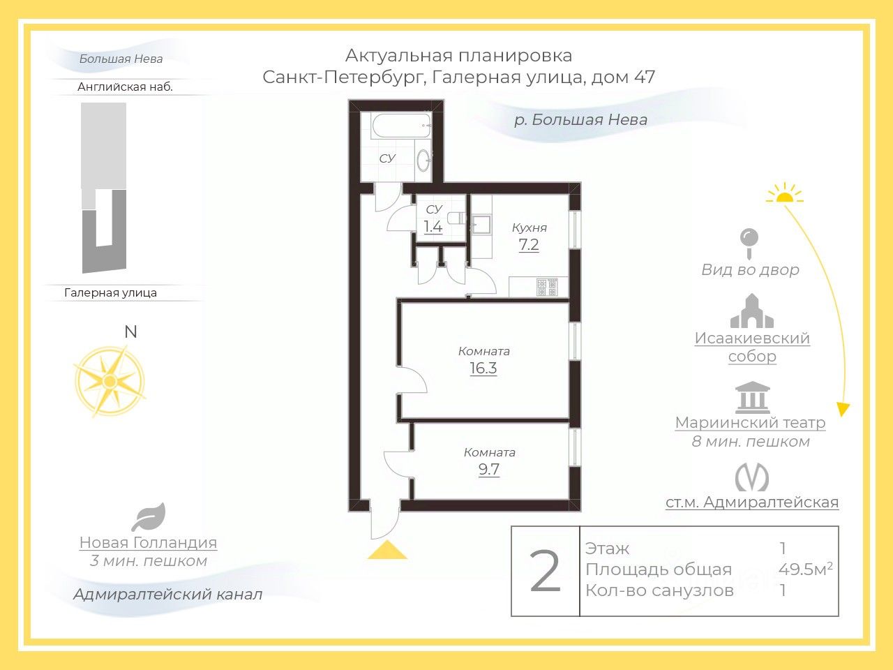 Всего в 3х минутах ходьбы от квартиры находится Новая Голландия, Мариинский театр, Никольский и Исаакиевский собор и множество набережных.
