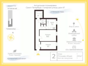 Двухкомнатная квартира площадью 49,5 м2 в историческом доме 1830 года постройки.