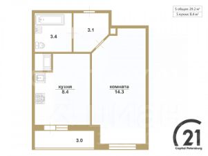 - уютная комната 14,3 кв.м.;