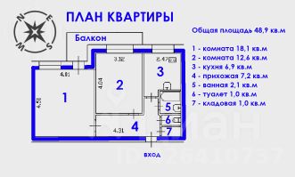 — общая площадь 48,9 м²