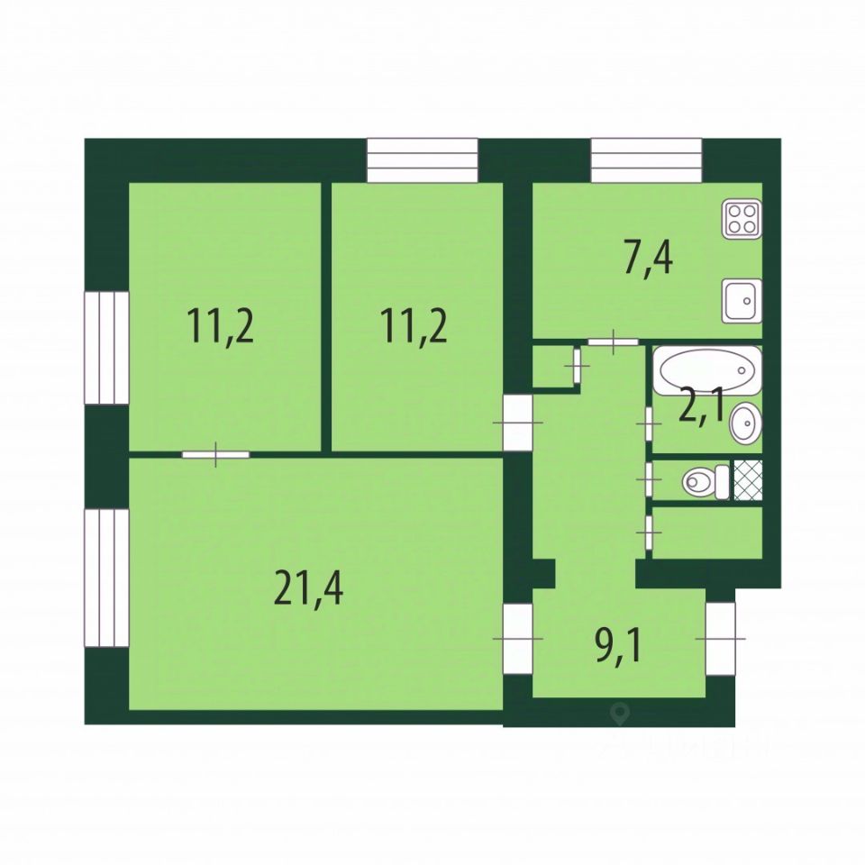7,4 м²