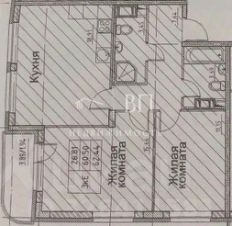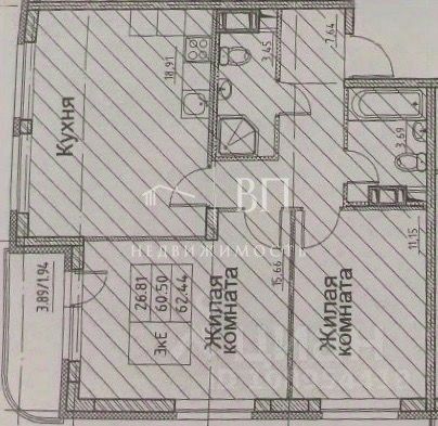 Жилая площадь - 26.81 кв.м. (комнаты 15.66 + 11.15)