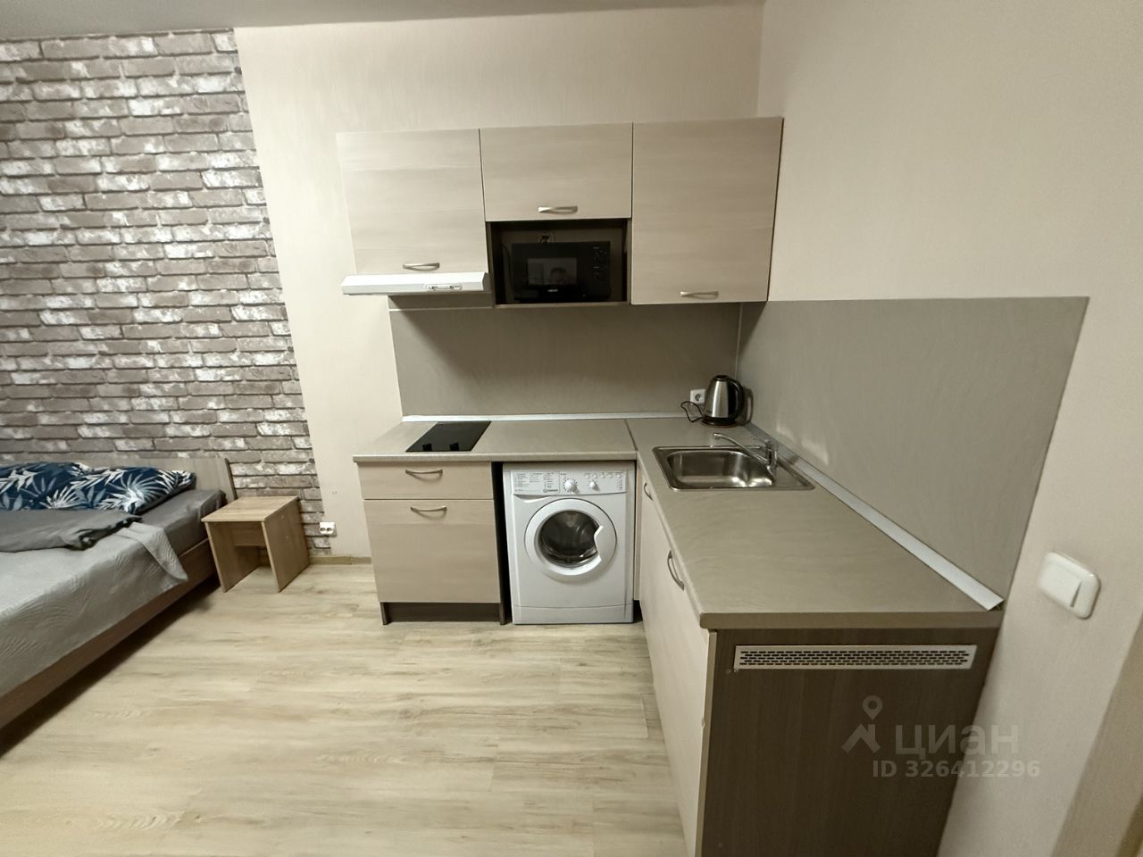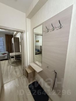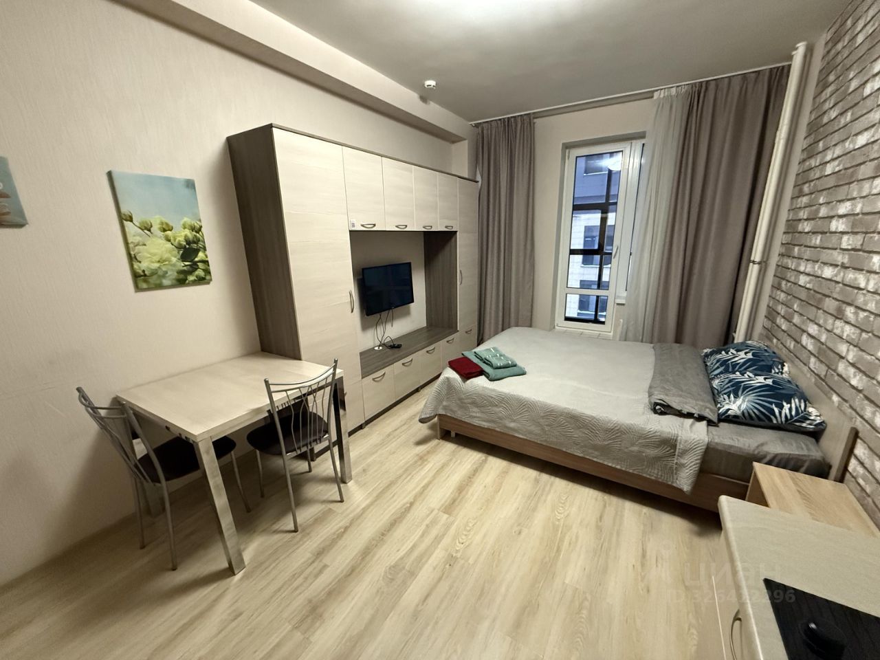 Общая площадь студии составляет 24,4 м2, кухня-гостиная 16,2 м2, прихожая 2,7 м2, совмещенный санузел площадью 3,5 м2 и просторная лоджия с панорамными окнами и морозостойким вместительным шкафом для хранения площадью 2 м2.