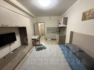 Общая площадь студии составляет 24,7 м2, кухня-гостиная 16,4 м2, прихожая 2,7 м2, совмещенный санузел площадью 3,5 м2 и просторная лоджия с панорамным остеклением и морозостойким вместительным шкафом для хранения площадью 2,1 м2.
