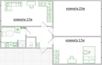 В парадной всего по 2 квартиры на этаже. Квартира с просторными и светлыми комнатами(23+17+17метров), высокими потолками 2,9м. Во всех комнатах на полу ламинат. Новым хозяевам остается кухня с посудомоечной машиной (Bosch), стиральная машина LG, холодильник NO FROST.