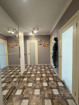 Евроремонт хорошего качества, выполненный в приятных светлых оттенках, создаст атмосферу свежести и гармонии. Ламинат в жилых зонах обеспечит комфорт ногам, а керамогранит с тёплым полом в коридоре и кухне-гостиной подарит дополнительное тепло и удобство.