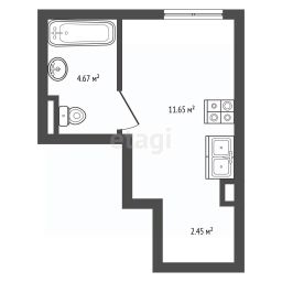 Общая площадь 18,7 кв.м. С отделкой и меблировкой.