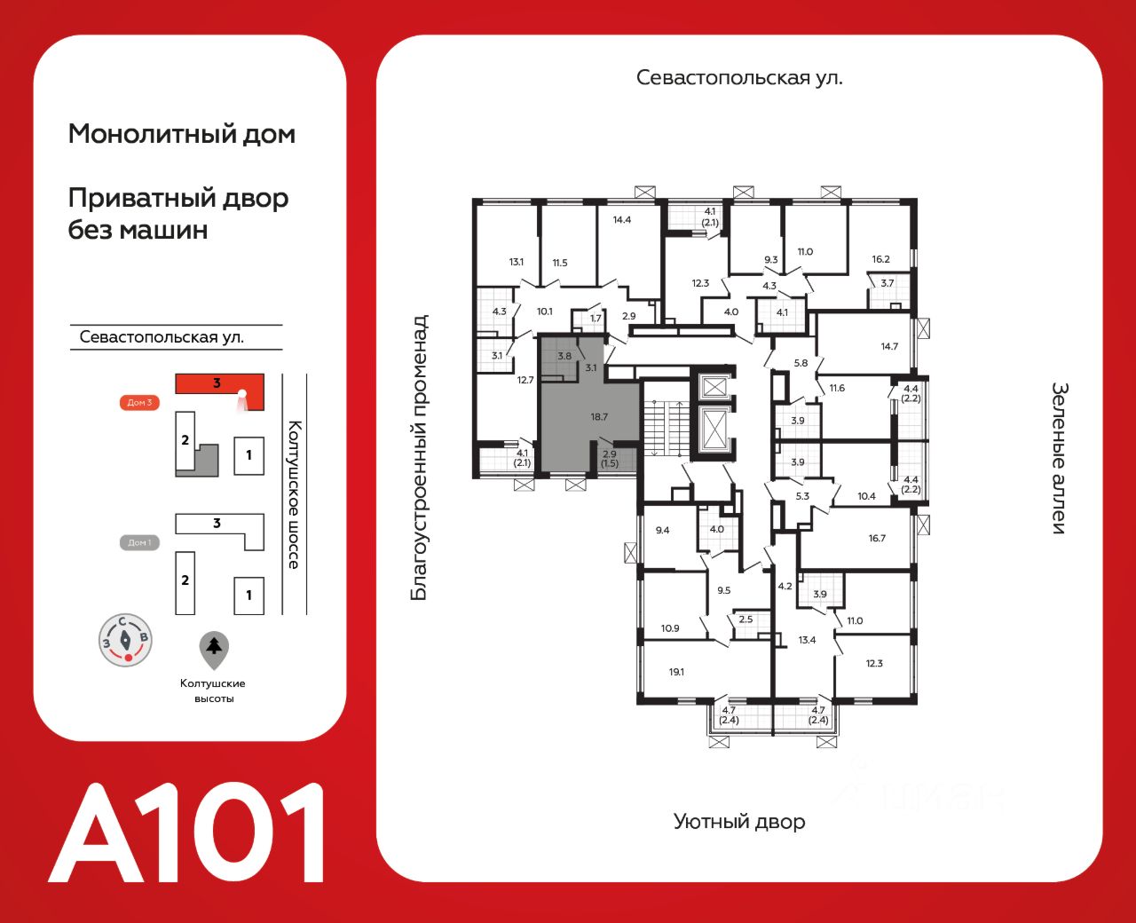 ГК "А101" - крупный инвестиционно-строительный холдинг, занимает 6-е место по объему строительства в России (по данным "Единого ресурса застройщиков" на 2023 год). НКР присвоило ГК "А101" кредитный рейтинг A+.ru, подтверждая его надежность и финансовую устойчивость для завершения строительства ЖК.