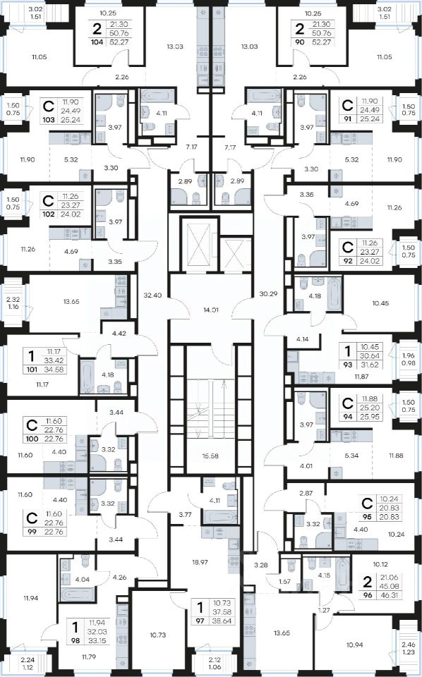 Продается 1-комн. квартира на 7-м этаже в строящемся проекте комфорт-класса Новоселье. Общая площадь лота составляет 38,64 кв. м, из которых 10,73 кв. м отведено под жилую и 18,97 кв. м под кухонную зону. Номер квартиры - 97