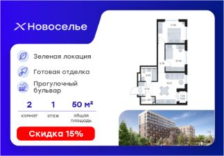 Продается 2-комн. квартира на 1-м этаже в строящемся проекте комфорт-класса Новоселье. Общая площадь лота составляет 50,88 кв. м, из которых 21,11 кв. м отведено под жилую и 15,61 кв. м под кухонную зону. Номер квартиры - 12