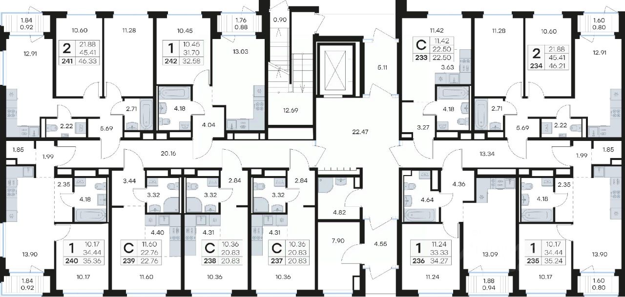Продается квартира-студия на 1-м этаже в строящемся проекте комфорт-класса Новоселье. Общая площадь лота составляет 22,50 кв. м, из которых 11,42 кв. м отведено под жилую и 3,63 кв. м под кухонную зону. Номер квартиры - 233