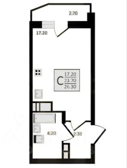 Площадь: по документам 23,7 кв.м. оптимальное пространство для жизни.